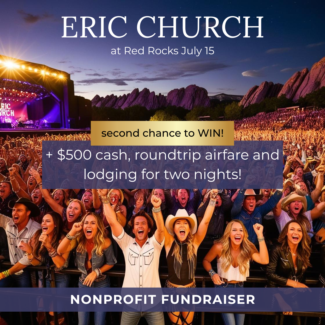 Another chance to win 5th row tickets to see Eric Church at Red Rocks Amphitheater plus airfare, lodging, and $500 cash.