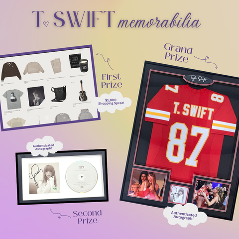 3 prizes = 3 winners! TSwift jersey with autograph, $1k shopping spree, and TTPD autograph.